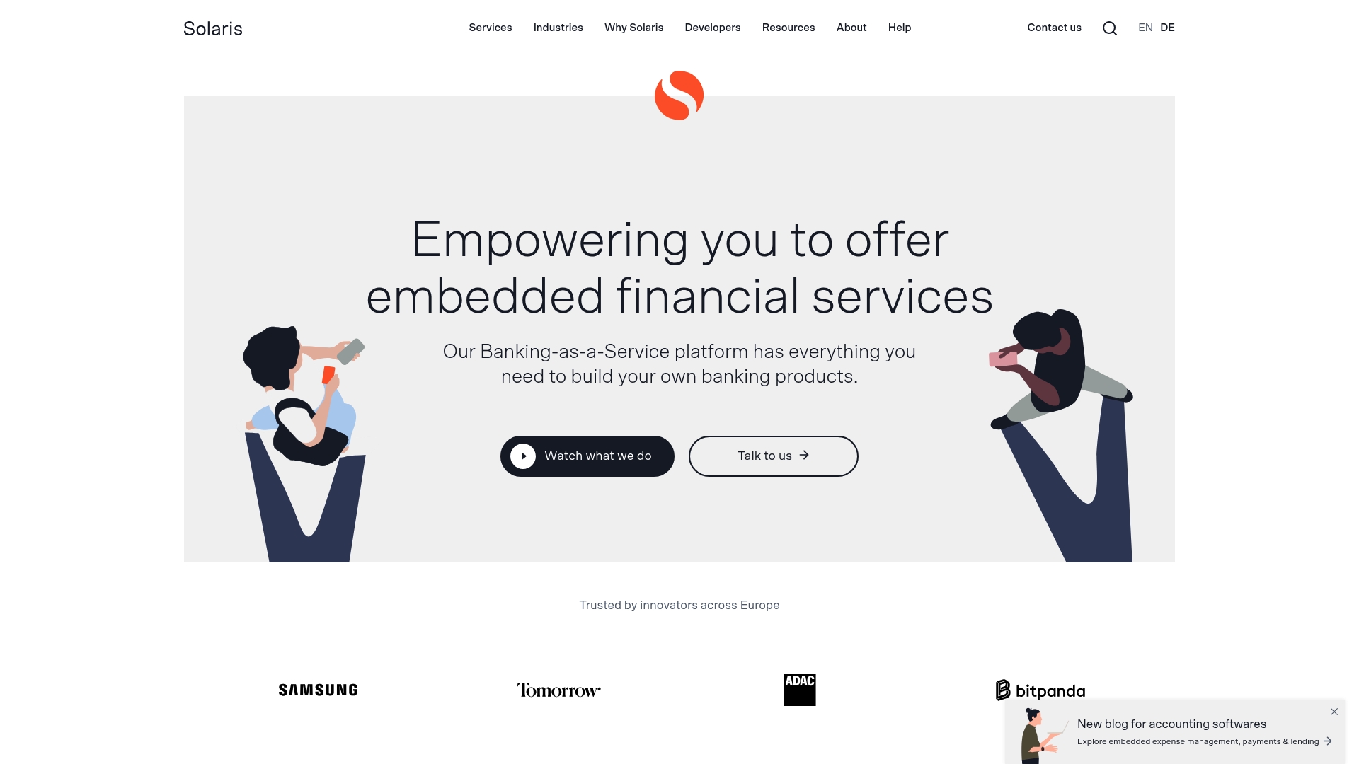 Modular product range: Solaris supports accounts, cards, payments, identification, and lending in a modular way so businesses can pick only the services they need.