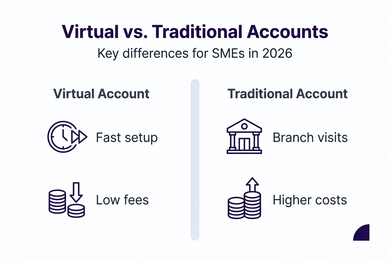 | Criteria | Virtual Business Account | Traditional Bank Account |
