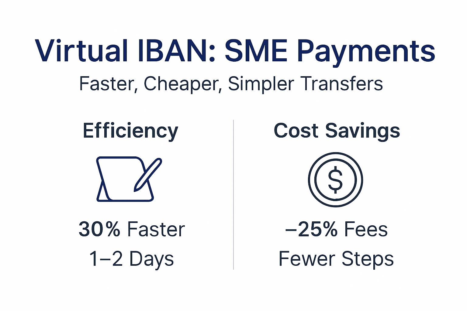 Virtual IBANs reduce payment reconciliation time by up to 50%, lower banking fees by 20-30%, and enable efficient multi-currency payment collection. They automate invoice matching and improve cash flow visibility significantly.